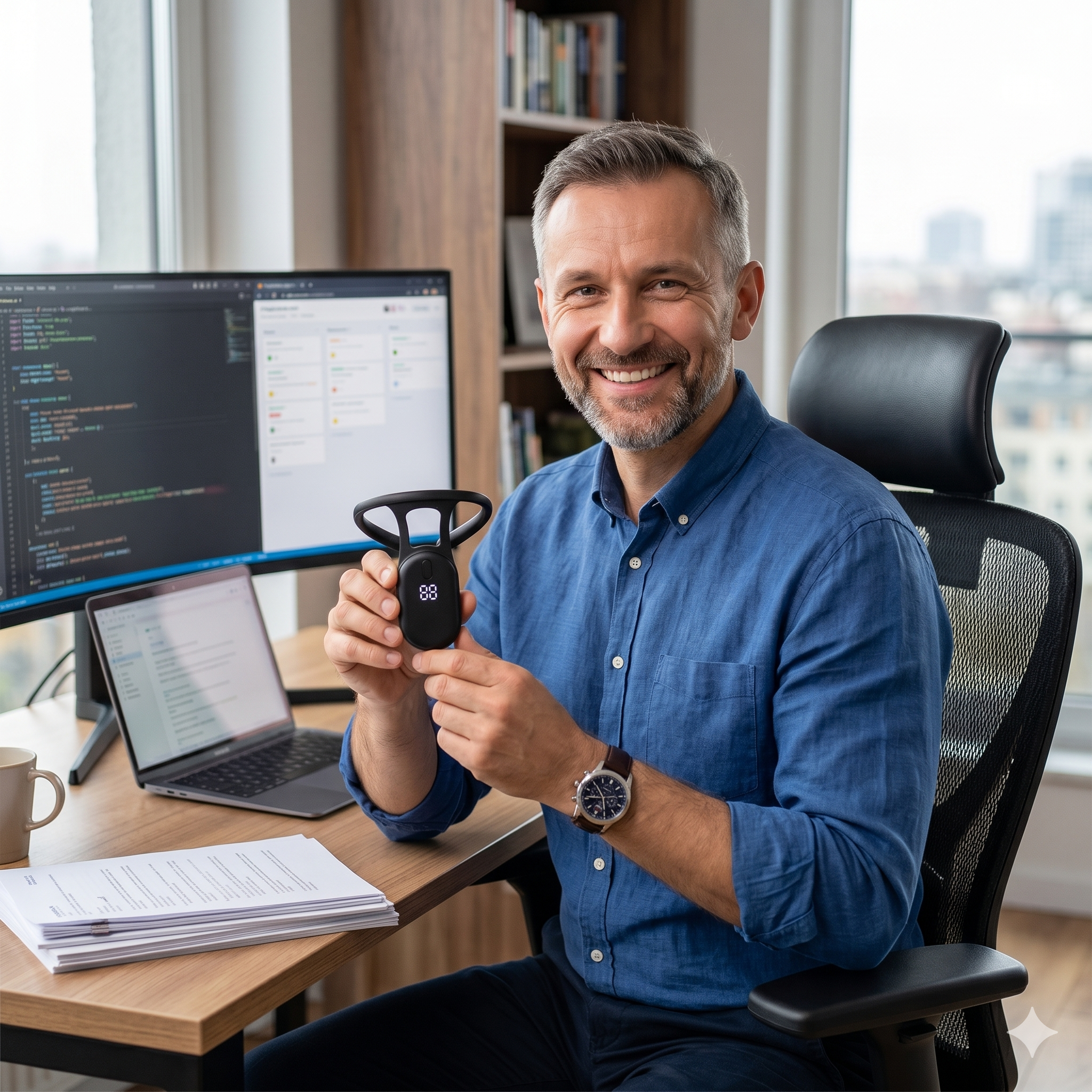 „Pracuję przy komputerze po 10h dziennie. Ten korektor całkowicie odmienił mój komfort pracy i wyeliminował ból, który towarzyszył mi od lat. W wieku 46 lat w końcu siedzę prosto bez wysiłku. Polecam każdemu!”